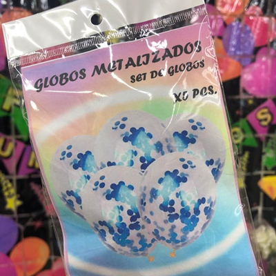 SET GLOBOS CRISTAL CON CONFETTI X 5 azul