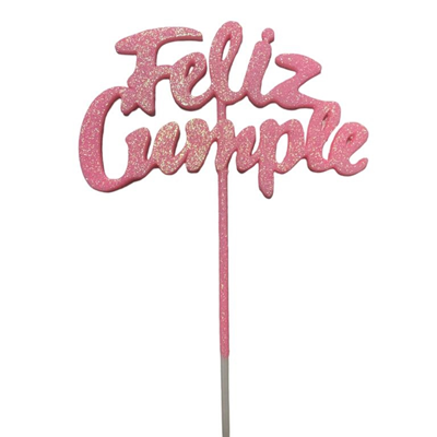 PINCHE FELIZ CUMPLE PLASTICO BRILLOSO X 5 ROSA BEBE