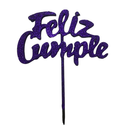PINCHE FELIZ CUMPLE PLASTICO BRILLOSO X 5 VIOLETA
