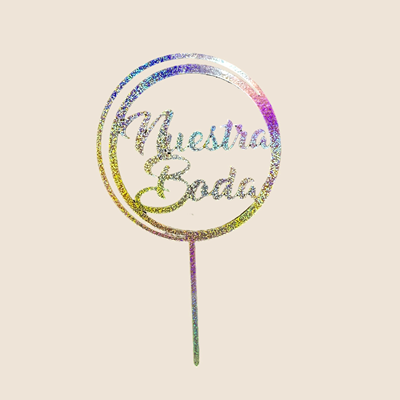 TOPPER LASER REDONDO CALADO boda holografico