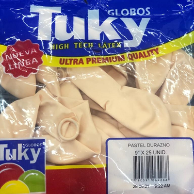 GLOBO PASTEL TUKY n9 X 25 DURAZNO