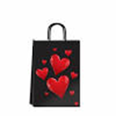 BOLSA DE CARTON 14X20 FSIA. NEGRA CORAZON ROJO
