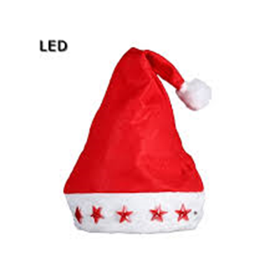 GORRO PAPA NOEL PAÑO DISEÑO ESTRELLAS C/LUZ X 12 (CM02980)