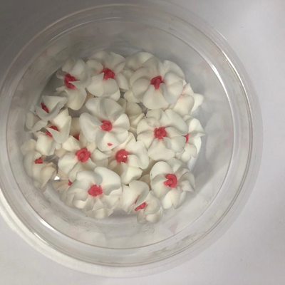 FLORES DE AZUCAR durazno mediana x 50 BLANCA centro rojo